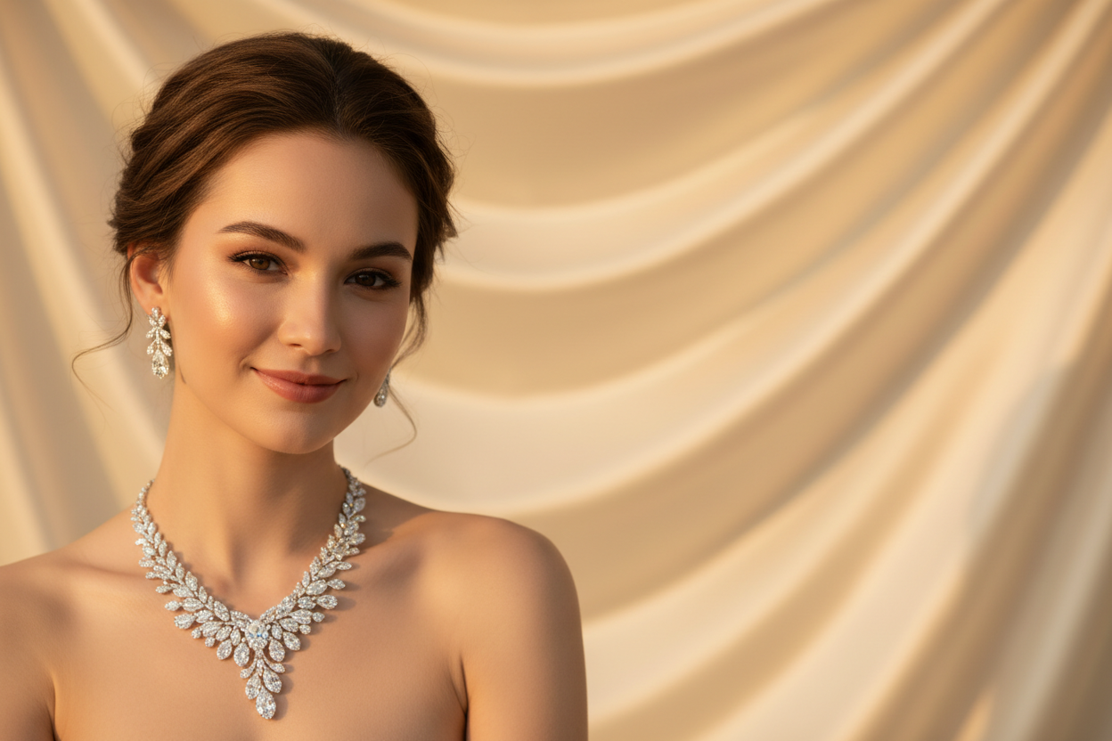 Oval Green Crystal Pendant Necklace Set With Bracelet
